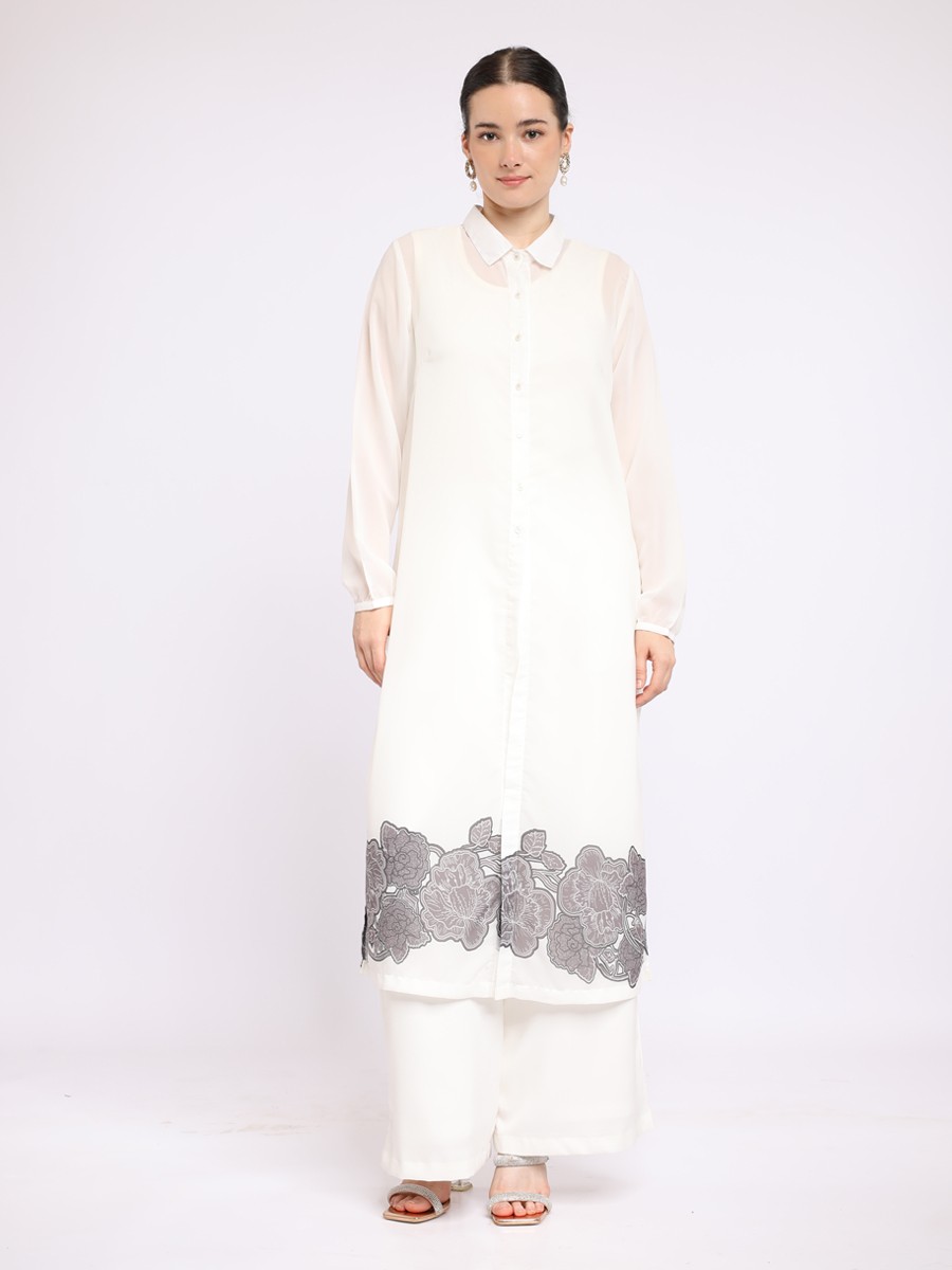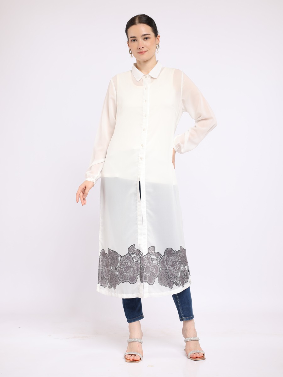Designed for both comfort and style,this chiffon long shirt it features a flowy,allowing for ease of movement.The botton-down front and structured collar add a classic touch.