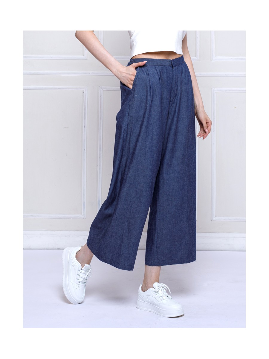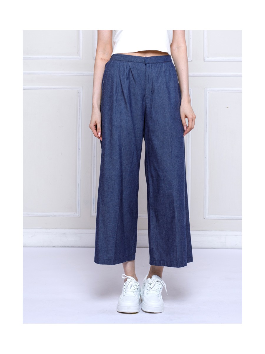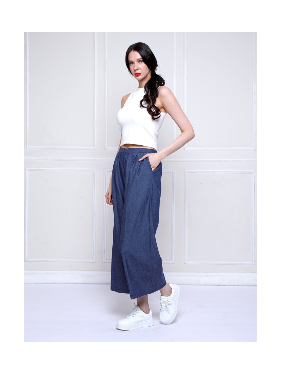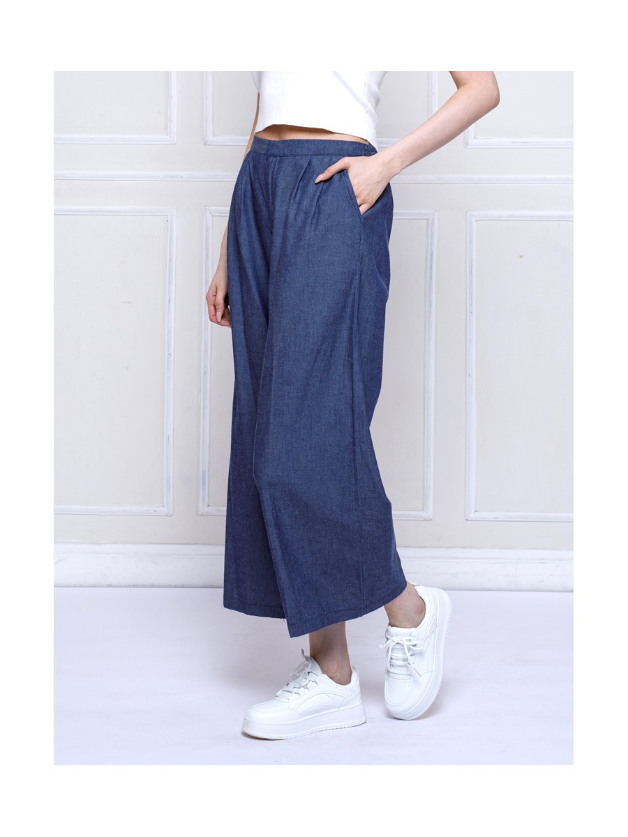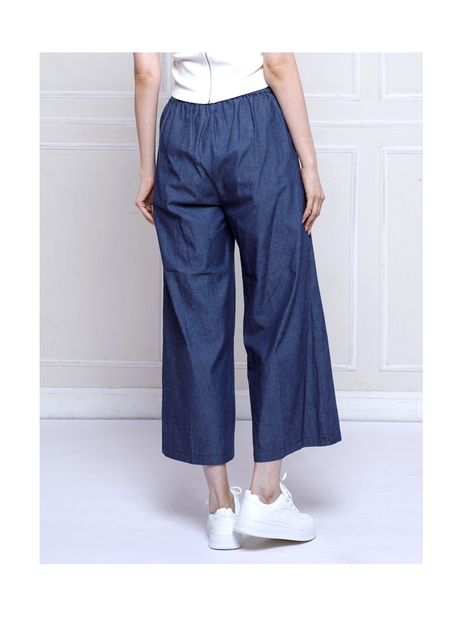 These BLUE CHAMBRAY palazzo pants are crafted from a cotton blend fabric,these pants feature a loose fitted silhouette with a high waisted cut with elastic waistband for your casual moment.