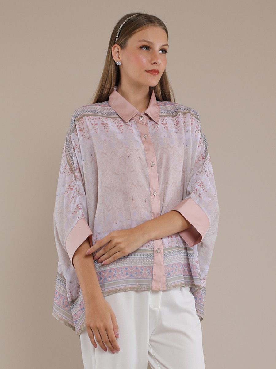 This kaftan blouse it's a part of SPRING GARDEN PRINT collection,made from chiffon printed fabric.The drapery effect and jeweled button makes the lookmore elegant.Sleeveless satin inner tops included.